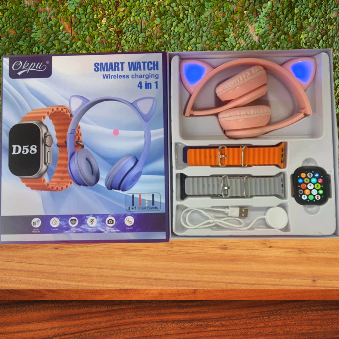 D58 Ultra Smartwatch with Wireless Multimedia Headphones